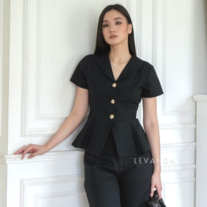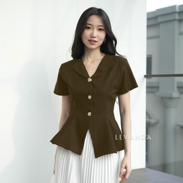 [LEVANDA] KARLA T0P - ATASAN WANITA LENGAN PENDEK / BLOUSE WANITA SEMI WOOL PREMIUM / BLAZER CASUAL OUTFIT - BROWNIES, S