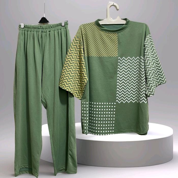 JJW - STRIPY SETELAN ONE SET HARIAN SANTAI OOTD WANITA DEWASA BIGSIZE KEKINIAN NYAMAN ADEM ELEGAN - SAGE
