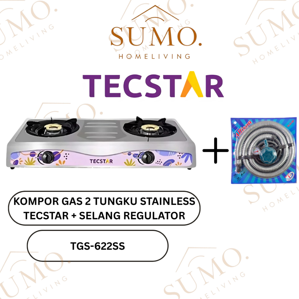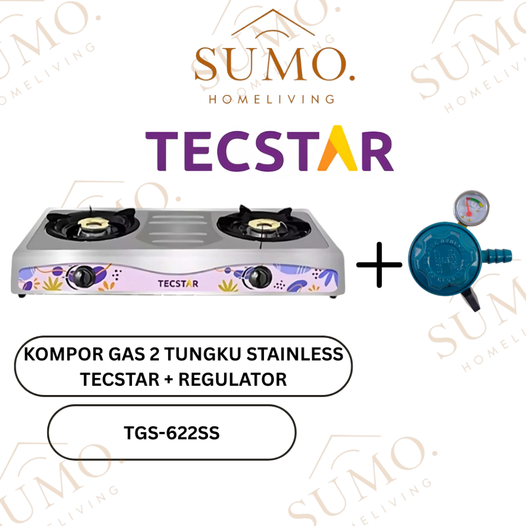 TECSTAR Kompor 2 Tungku Stainless TGS-622SS/Kompor 2 Tungku TECSTAR Stainless Anti Karat,SNI