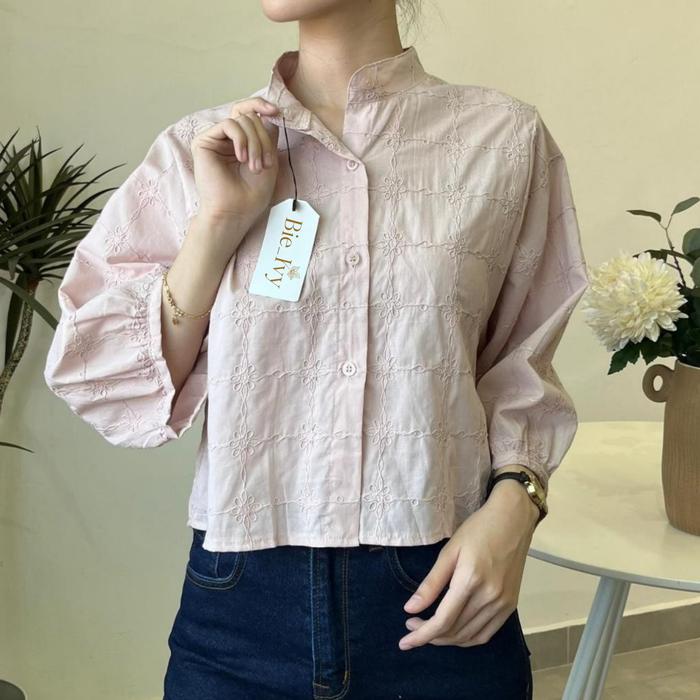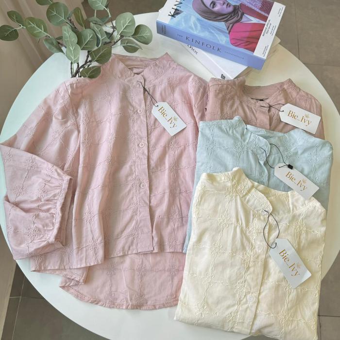 BIE IVY | ATASAN WANITA KATUN IMPORT PREMIUM LONG SLEEVE / BLOUSE BANGKOK / E.235 - KEIRA CREAM