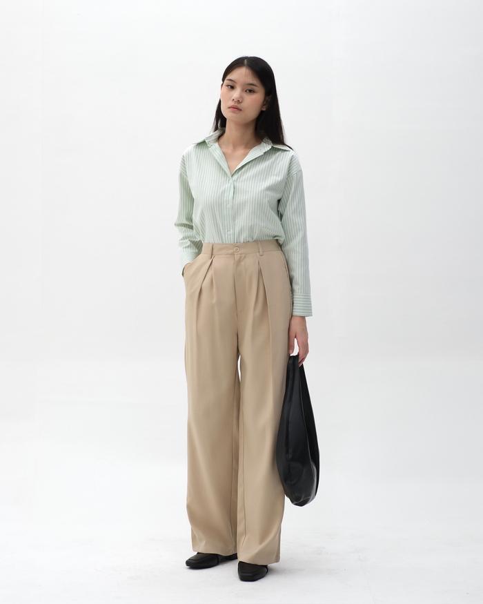 KEMEJA PANJANG SALUR WANITA | HANNI STRIPED SHIRT | HULM - LIGHT BLUE 1, M