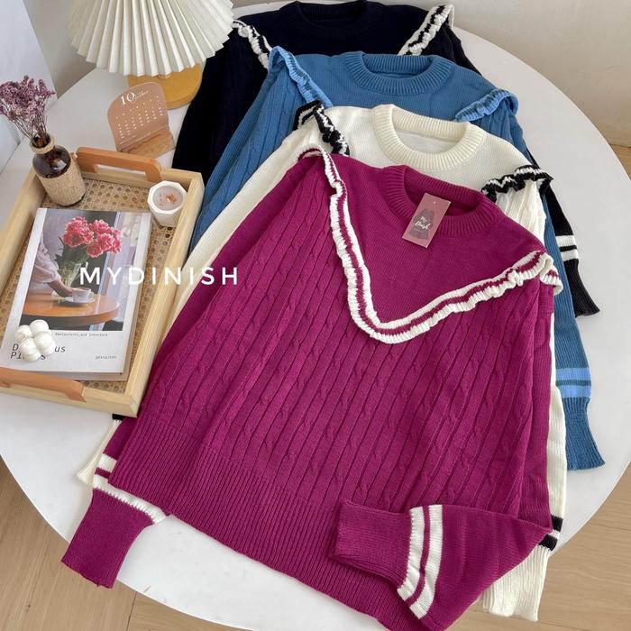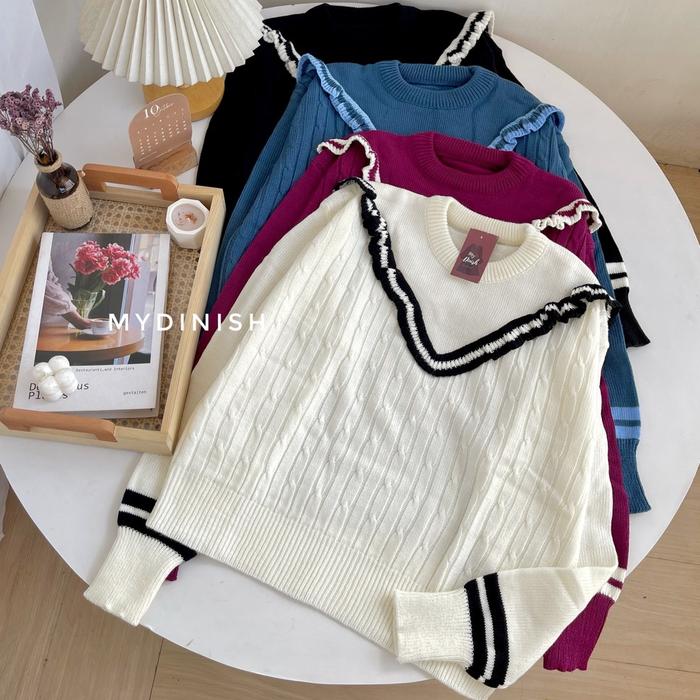 MINES RUFFLE BLOUSE - ATASAN WANITA RAJUT KOREAN STYLE BAJU NYAMAN - DEEF FUCHIA, ALL SIZE