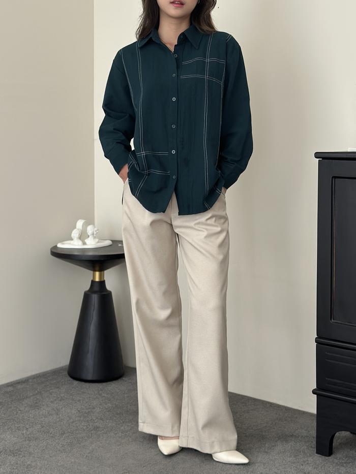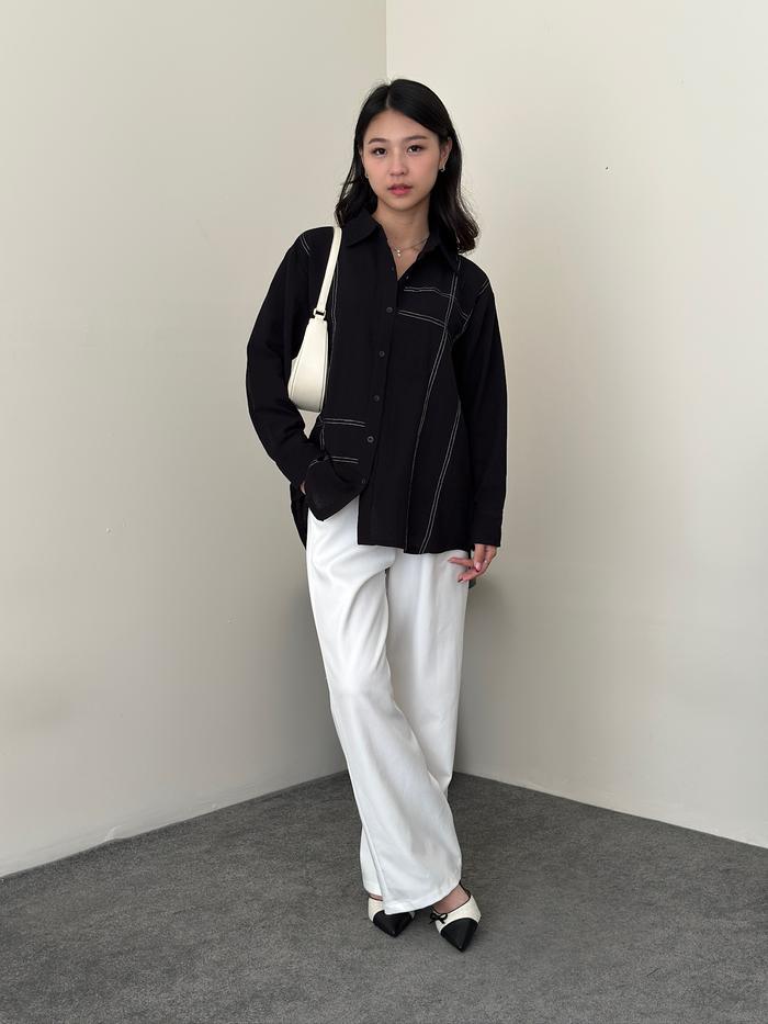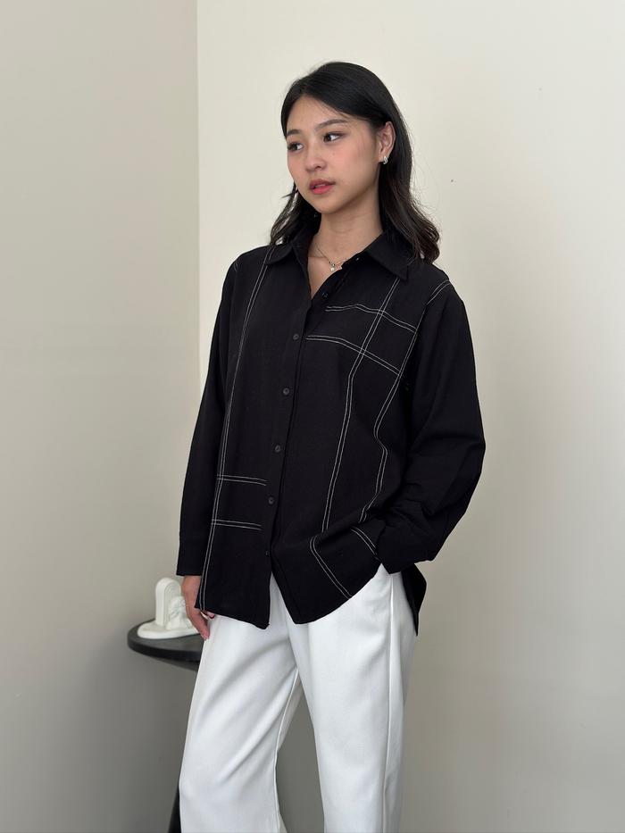 ASOKA TWILA SHIRT 2289 - CONTRAST STITCHING OVERSIZE BLOUSE LONG SLEEVE - ATASAN WANITA KEMEJA KASUAL LINEN BAJU PANJANG