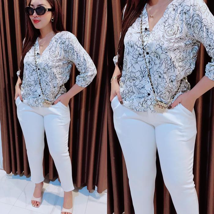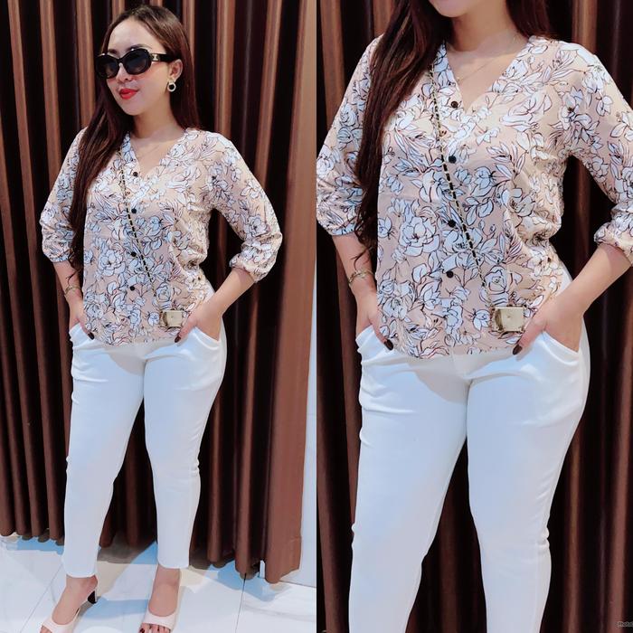 GROSIR NATALIA BLOUSE KANCING MOTIF ROSE MATERIAL RAYON daymen MODEL ATASAN DENGAN LENGAN BALON & KANCING HIDUP SIZE 1-2
