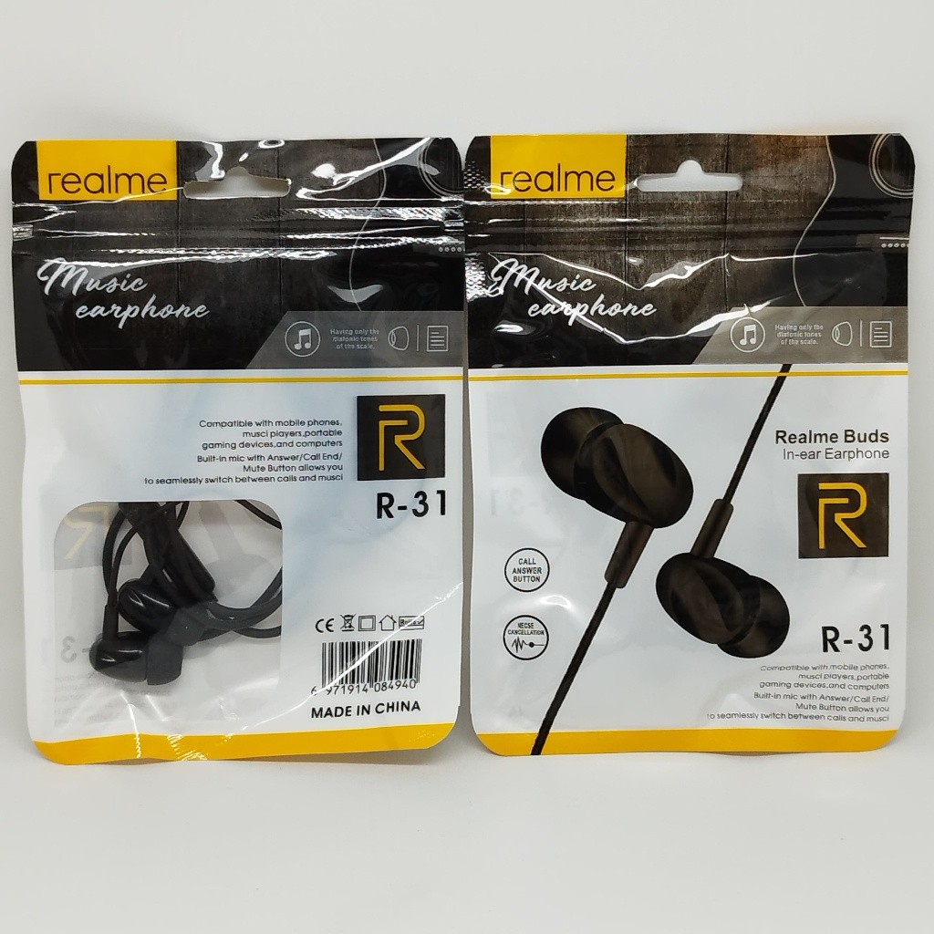 [Star] [BISA GROSIR] Handsfree Realme Buds R31 Earphone Headset Realme R-31 Stereo Sound Super Bass