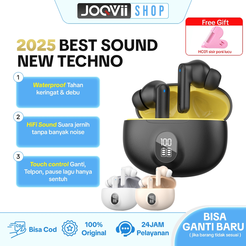 [Star] JOQVII Wireless Bluetooth Mini Earphones HD Stereo Sound in Ear with LED Battery Display - EP95R