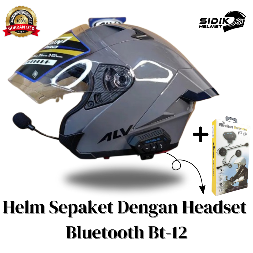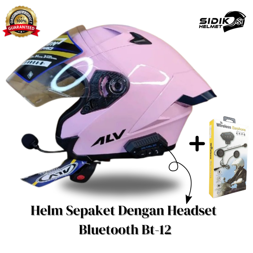 (SEPAKET)HELM ALV ULTRON PRO DENGAN HEADSET BLUETOOTH BT-12 100 PERSEN ORIGINAL, HELM ALV FREE SPOILER Helmet Half face terbaik,Terlaris Bestseller