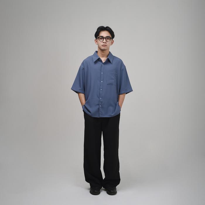 PILIANA KEMEJA OVERSIZE LENGAN PENDEK PRIA BLACK KEMEJA BOXY OVERSIZE