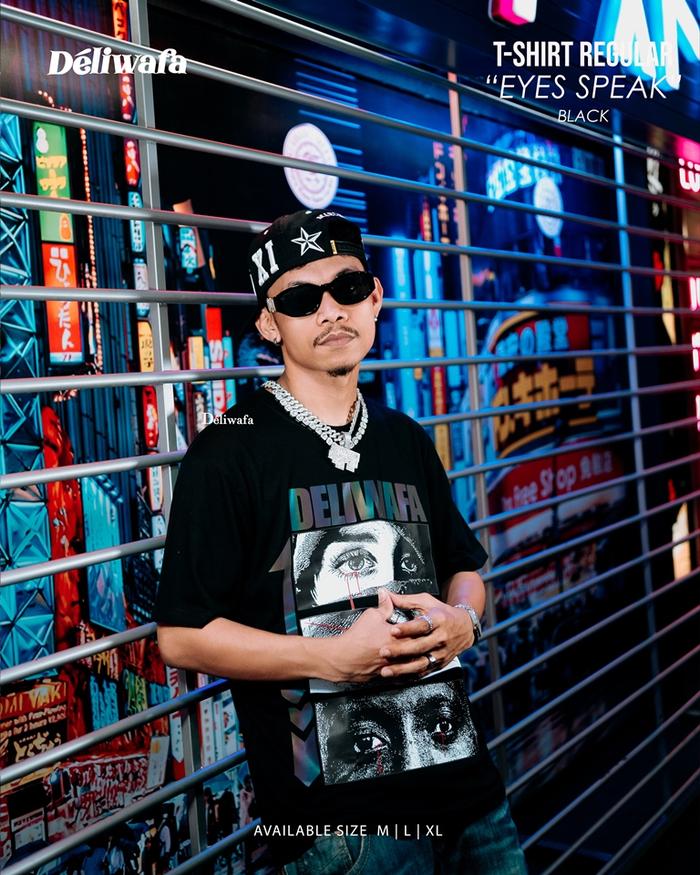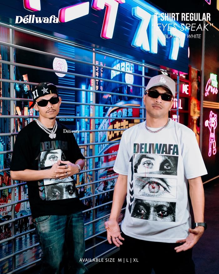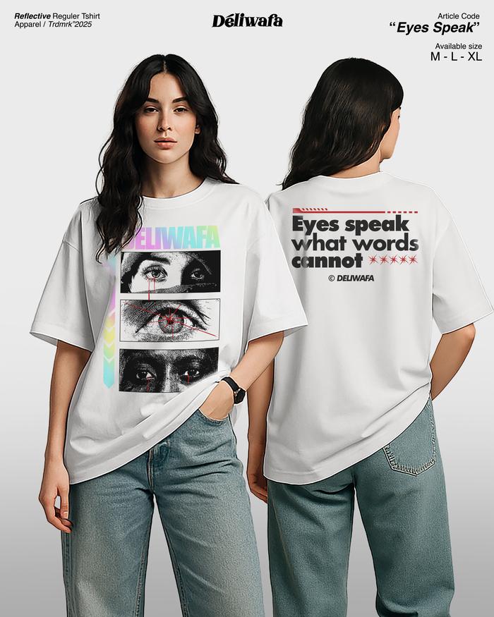 DELIWAFA - EYES SPEAK | T-SHIRT REGULAR | KAOS REFLECTIVE NYALA | BAJU PRIA WANITA - BLACK, M