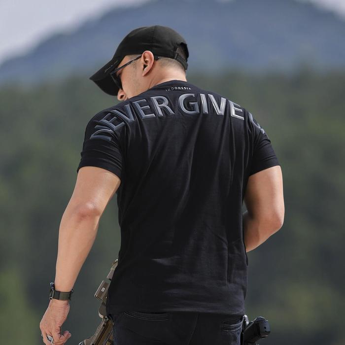 KAOS PRIA NEVER GIVE UP KECE COWOK BAJU DISTRO KEREN TERBARU DIATRO KOAS KATA KAOSBOS.ID - NGU BLACK EDIT, S