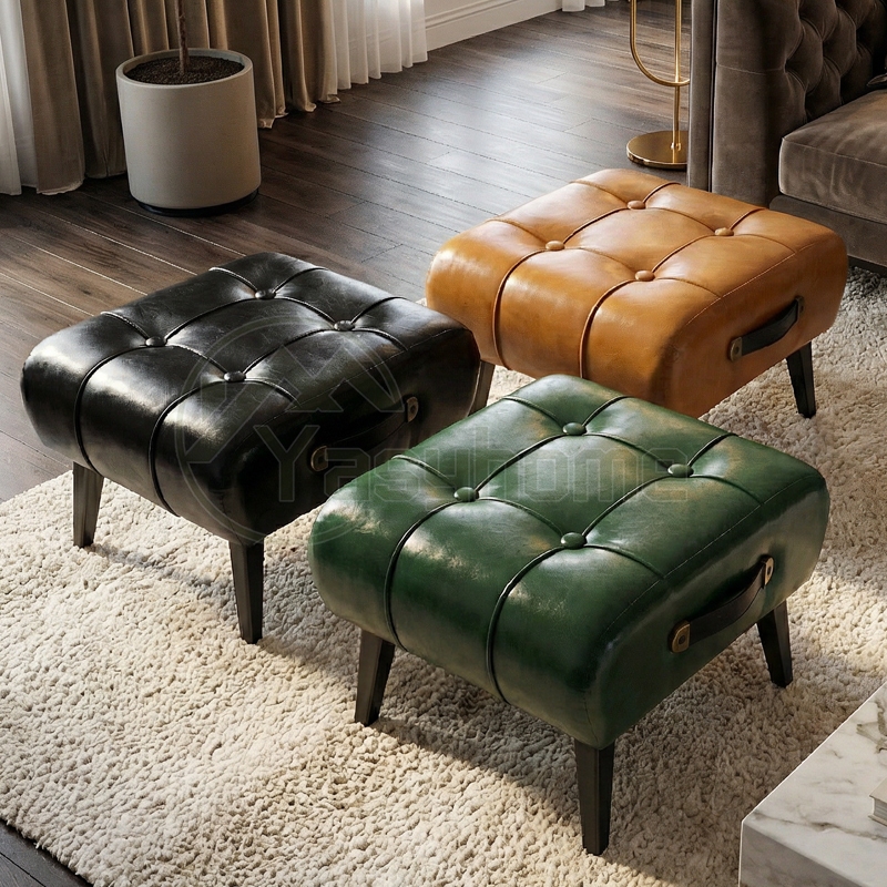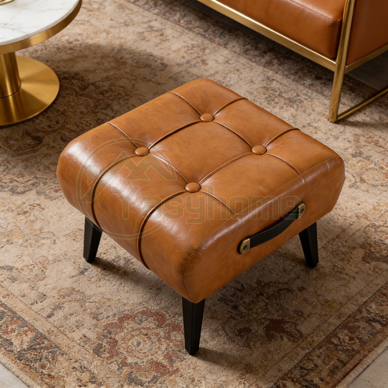 Kursi Stool Sofa Minimalis / Bangku Kulit / Kotak Bangku Sofa Kursi Minimalis / Sofa Kaki Besi / Sofa Stool Bulat Ljc