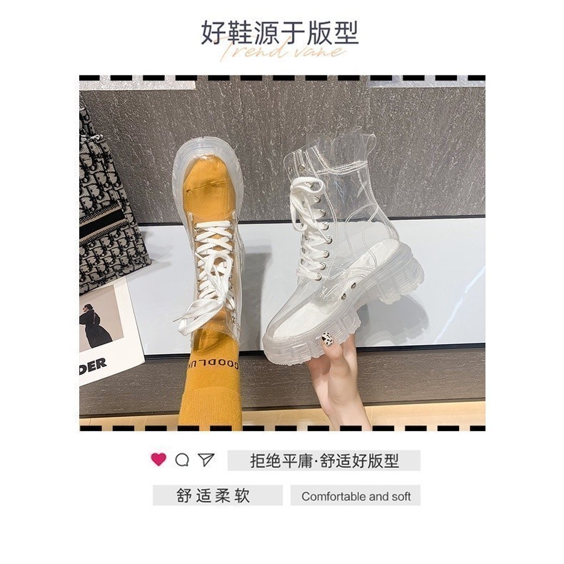 Sepatu Wanita Heels Hak 1501 Boots Boot Transparan (+ Kaos Kaki Random) Elegan Cantik Pesta