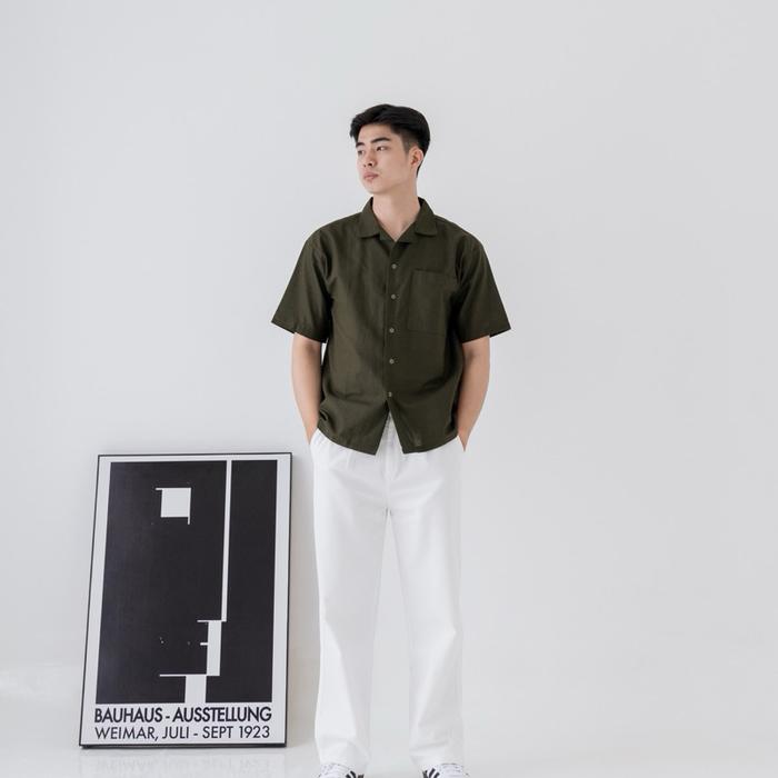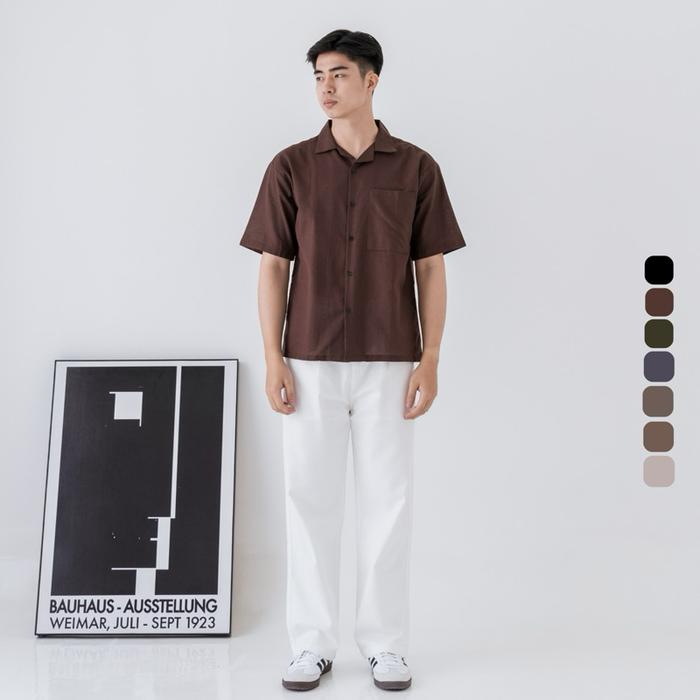 OSAKAA - CUBAN LINEN BOWLING SHIRT | KEMEJA LINEN LENGAN PENDEK COKELAT COFFE - BLACK, M
