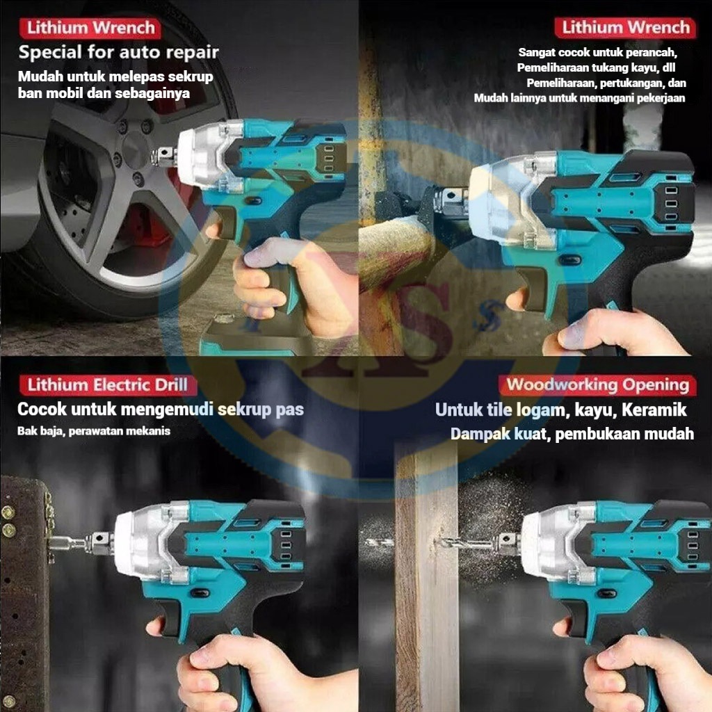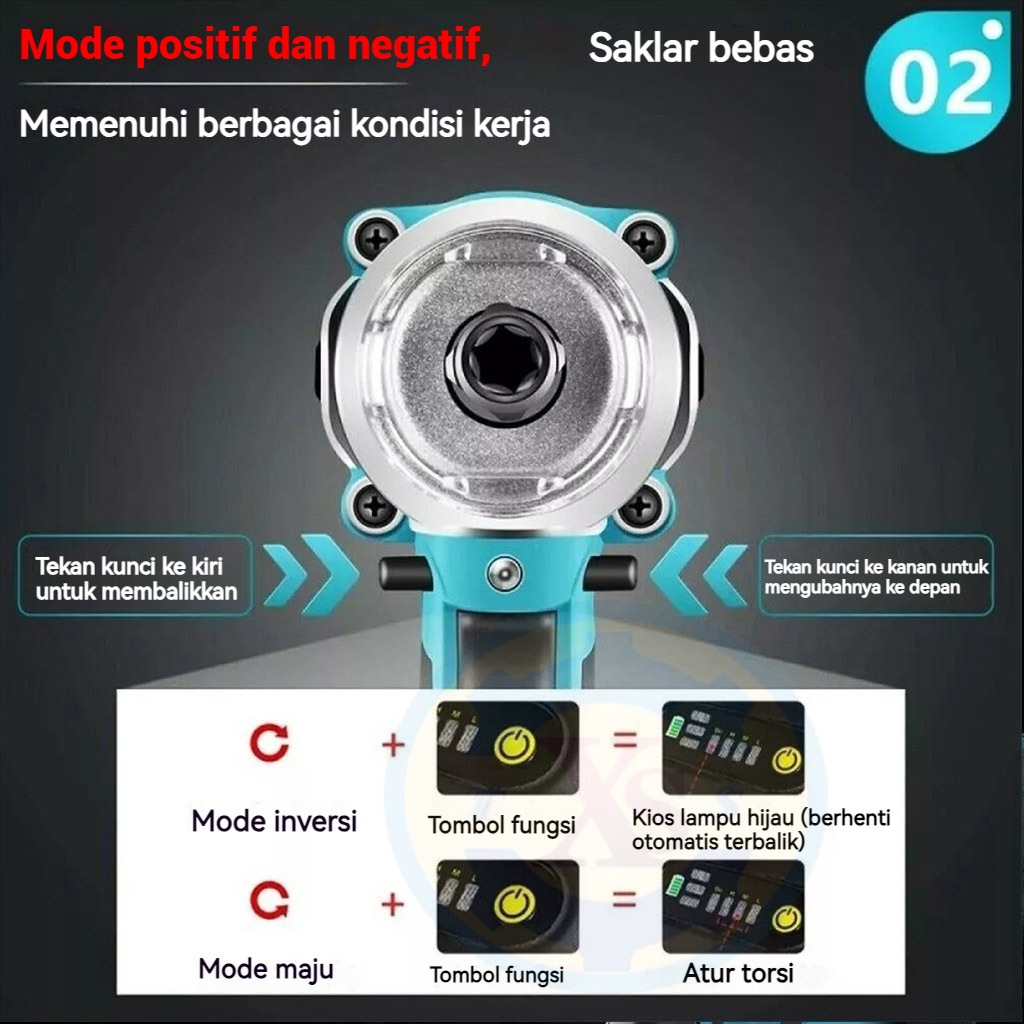 Cordless Impact Wrench 388V/588V 680N/M Bor Baterai Impact Brushless Kunci Impact Tanpa Kabel Tanpa Si