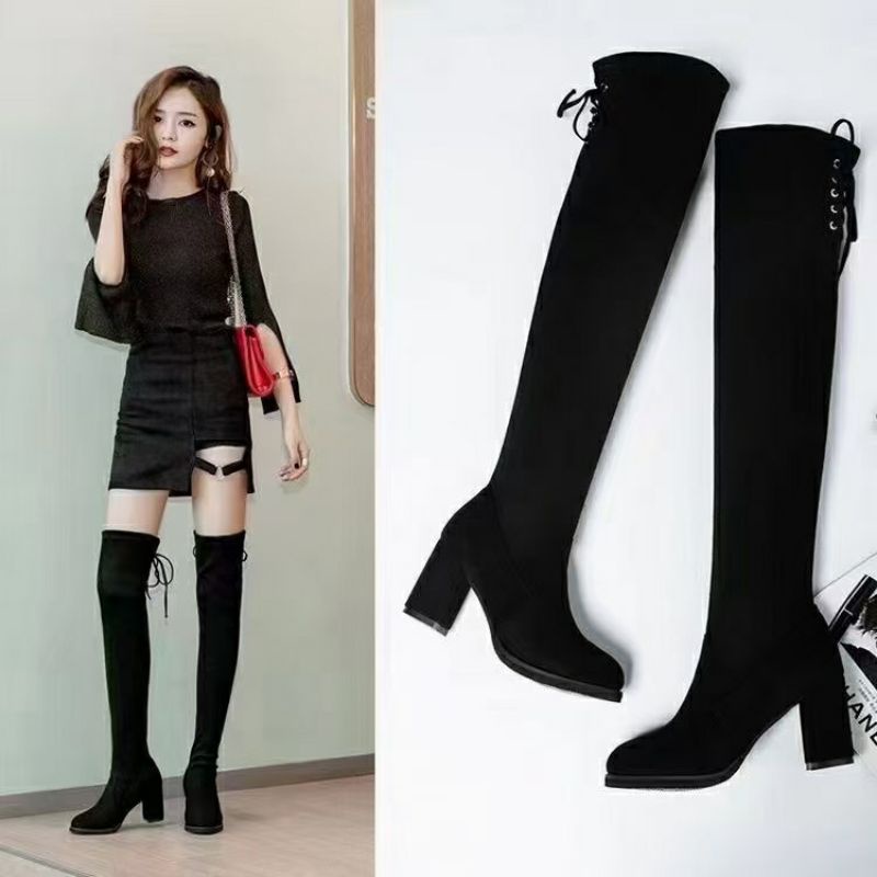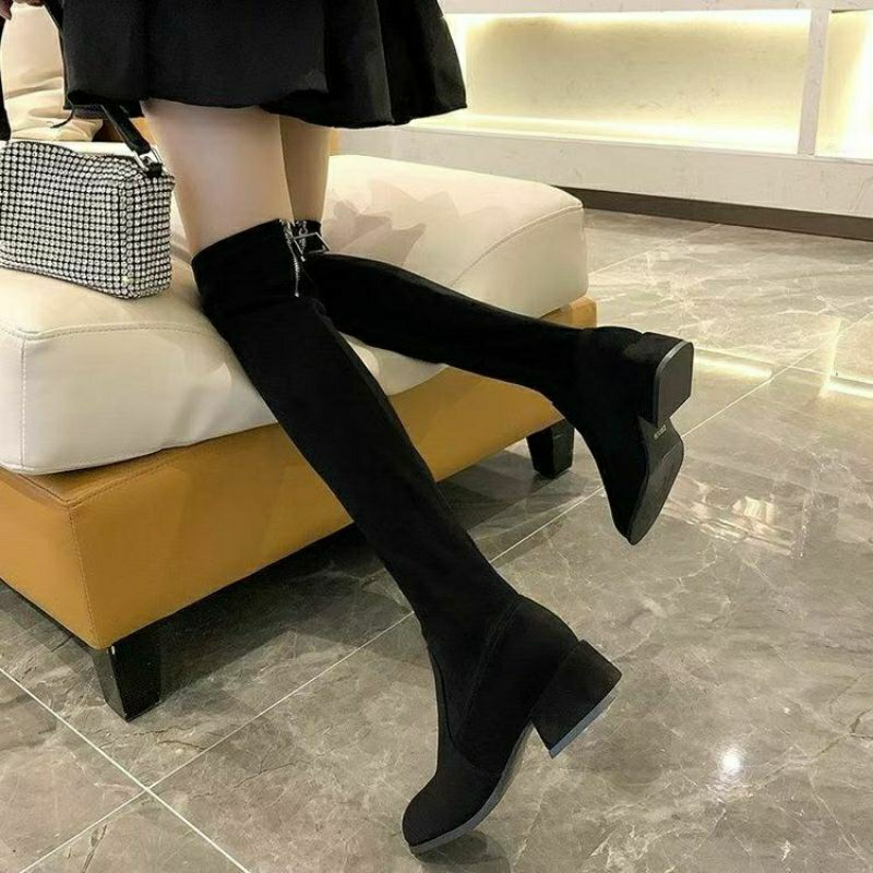 Over Knee Long Boots Heels Block Winter Korea Sepatu Kerja Wanita B21 B82