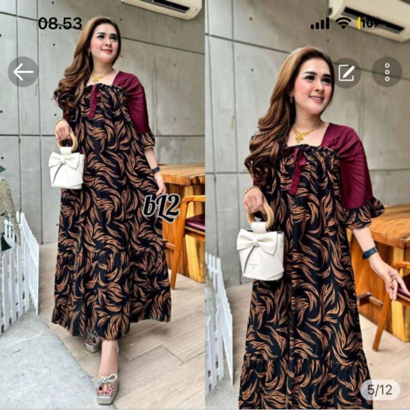 Daster Fuji Jumbo Panjang Model Zena Kerah Kerut Variasi Rempel Bahan Rayon Super Premium