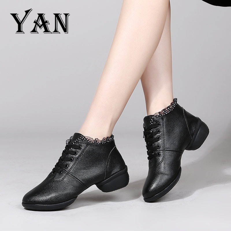 Yan Sepatu Dance Wanita Sepatu Dansa Latin/ Line Dance Semi Boots Renda Terbaru