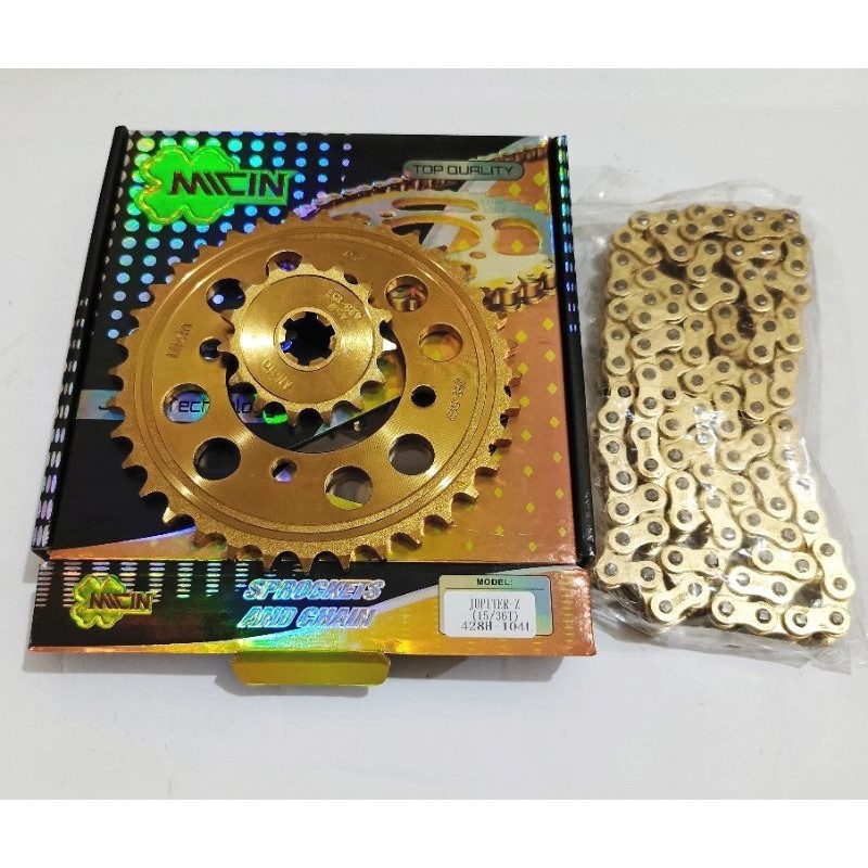 GEAR SET GIR SET kuningan mengkilap YAMAHA JUPITER Z GIR DEPAN 15 T GIR BELAKANG 36T RANTAI 428-104 RANTAI DAN GIR MOTOR JUPITER