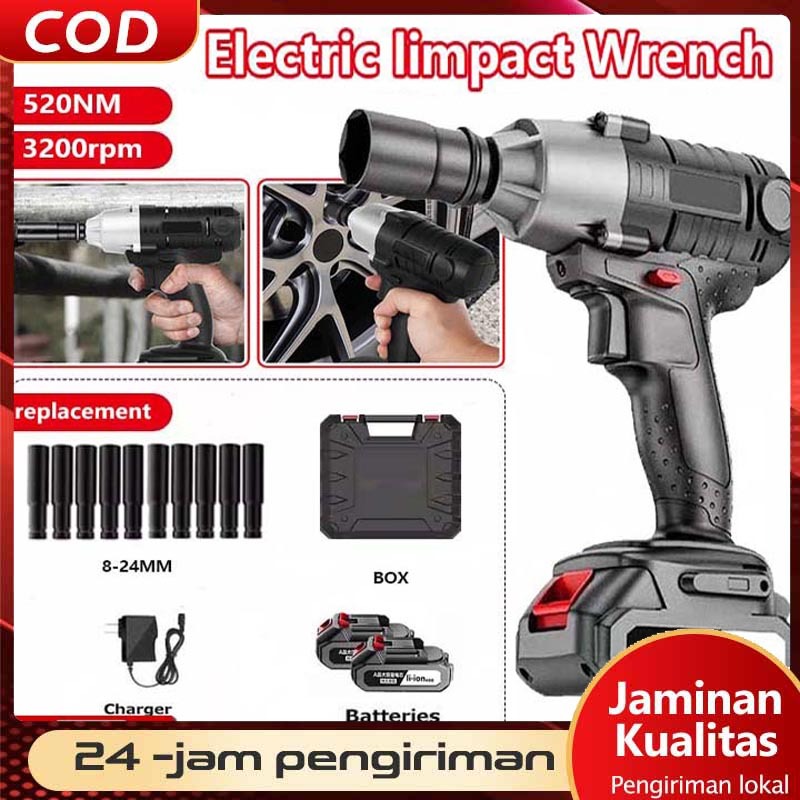21V Brushless Mesin Bor Impact Wrench Electric Wrench Tanpa Kabel Mesin Cordless 520Nm /Untuk Baut Mobil/Bor Tembok Be