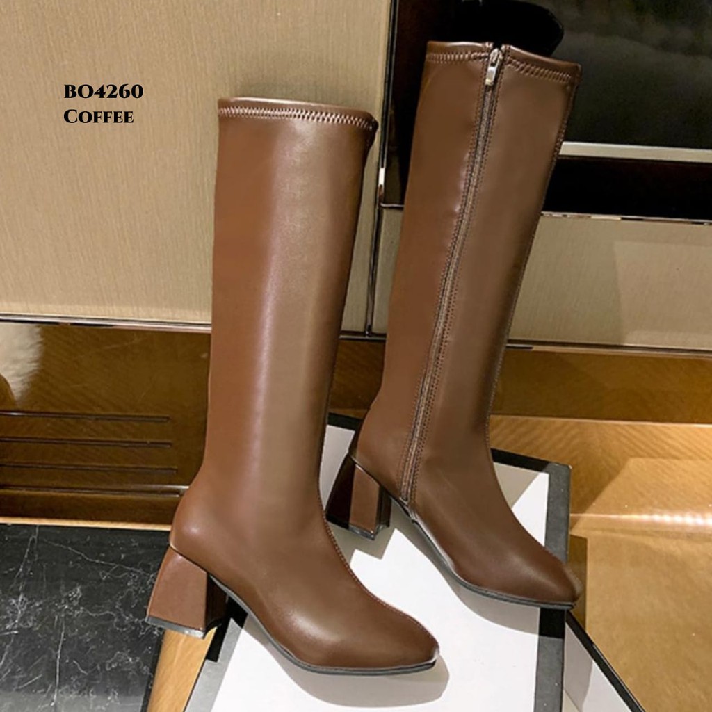 Wyn Sepatu Lingkar Betis Max 35Cm Long Boots Flat Tinggi 6Cm Sepatu Hak Wanita Kulit Sintetis Black Beige Coffee Ala Kor