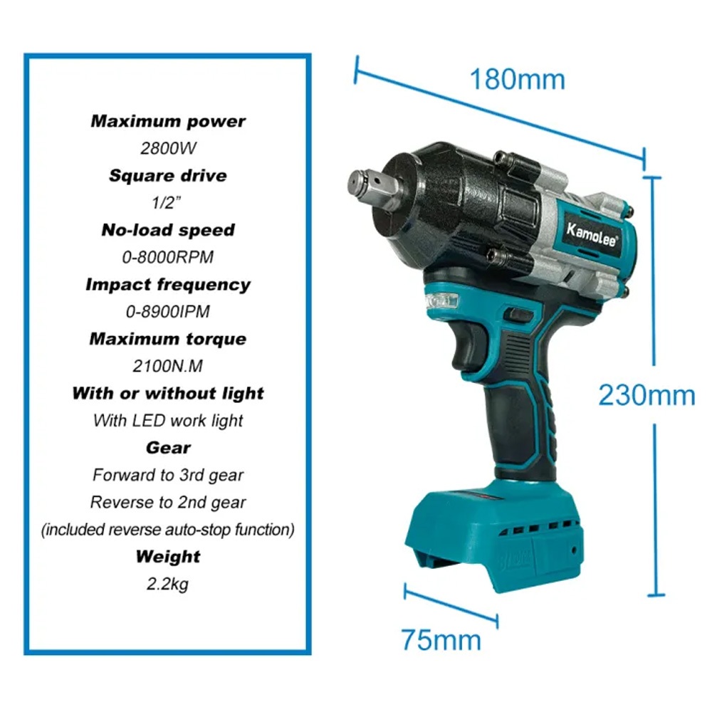 Kamolee Dtw800 2100Nm 1/2'' Impact Wrench Brushless Motor【Garansi 3 Bulan】