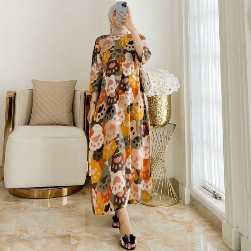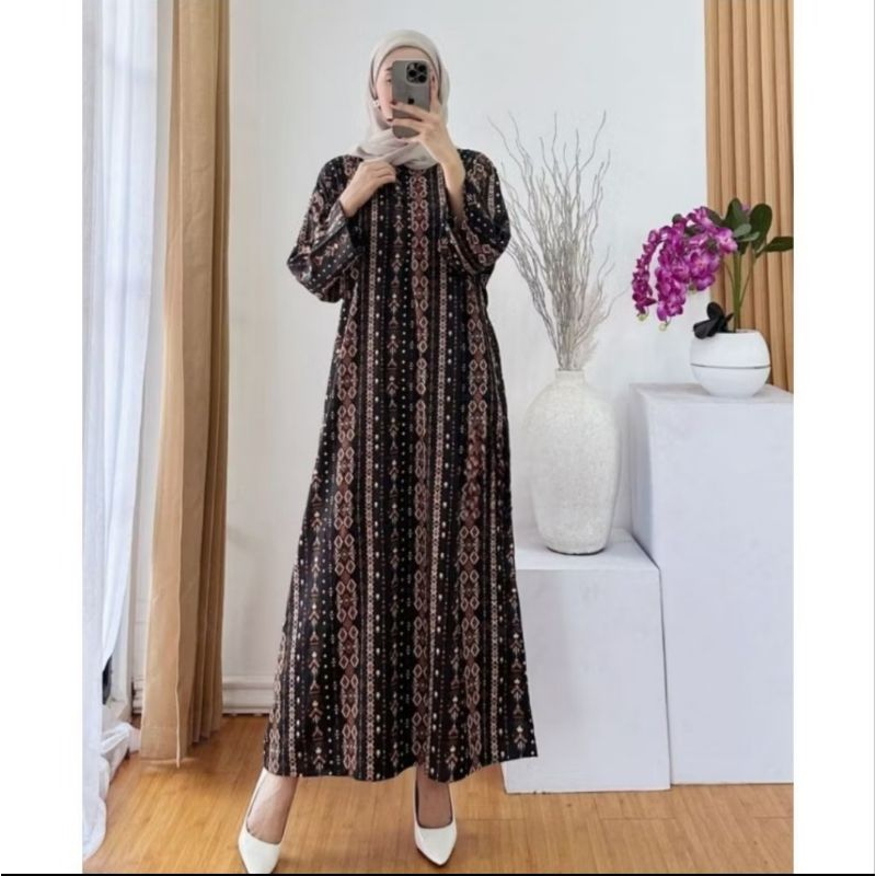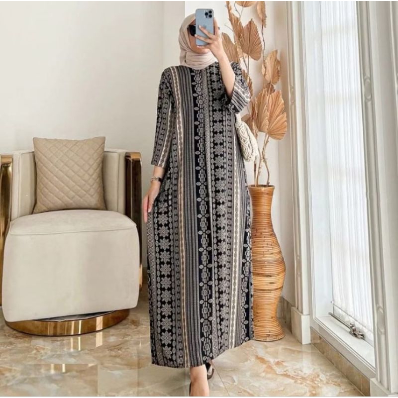 Daster Gamis Rayon Kekinian Motif Lengan 3/4 - Daster Lengan 3/4 Kekinian - Daster Lengan 3/4