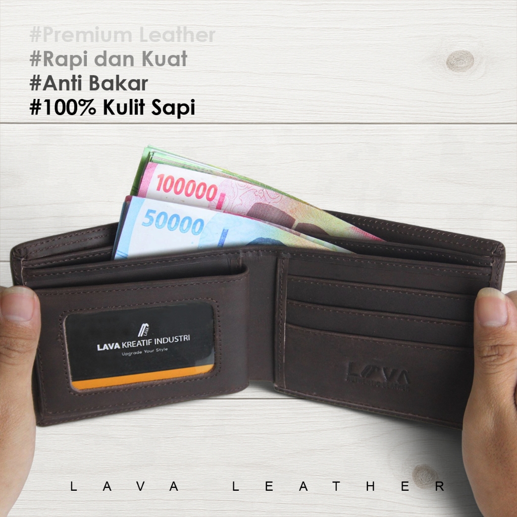 Dompet Pria Kulit Sapi Asli Crazy Horse Lava Bromo 6 Slot Kartu Terbaru
