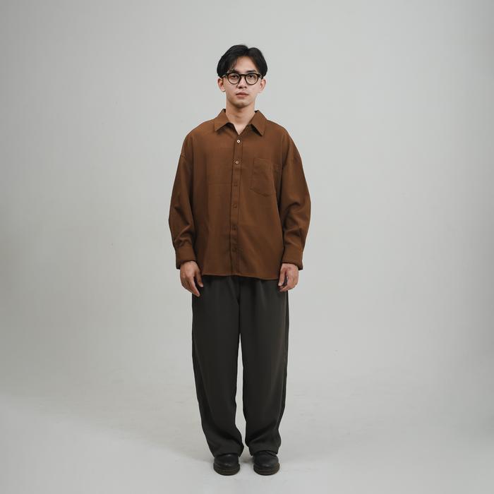 ROOMFAZZA KEMEJA LENGAN PANJANG PRIA OVERSIZED KASUAL KERJA ATASAN CASUAL FORMAL - COKLAT, S