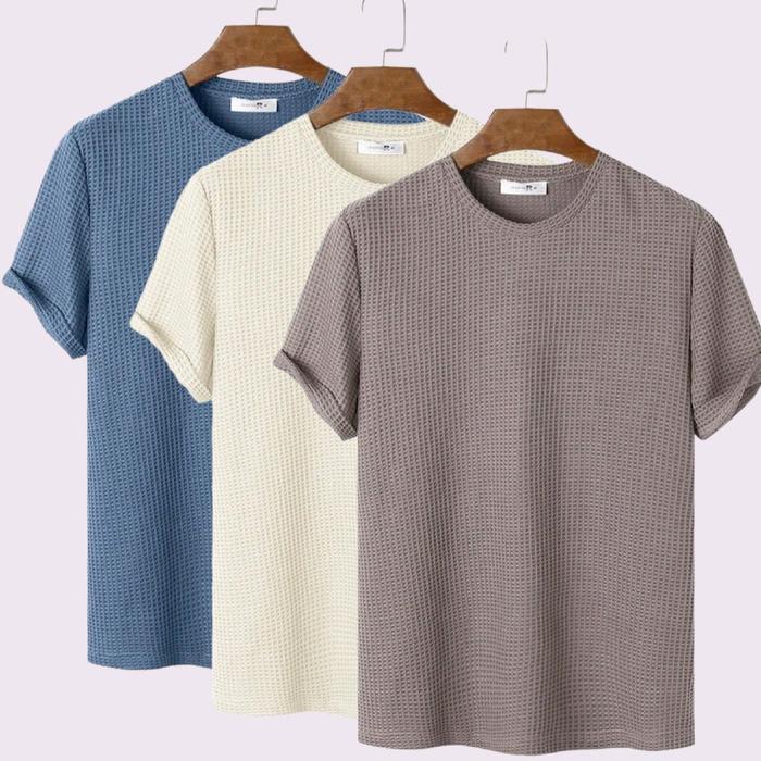 PAKET 3 PCS KAOS POLOS PRIA BAHAN WAFFLE - BIRU CREM LATE, M