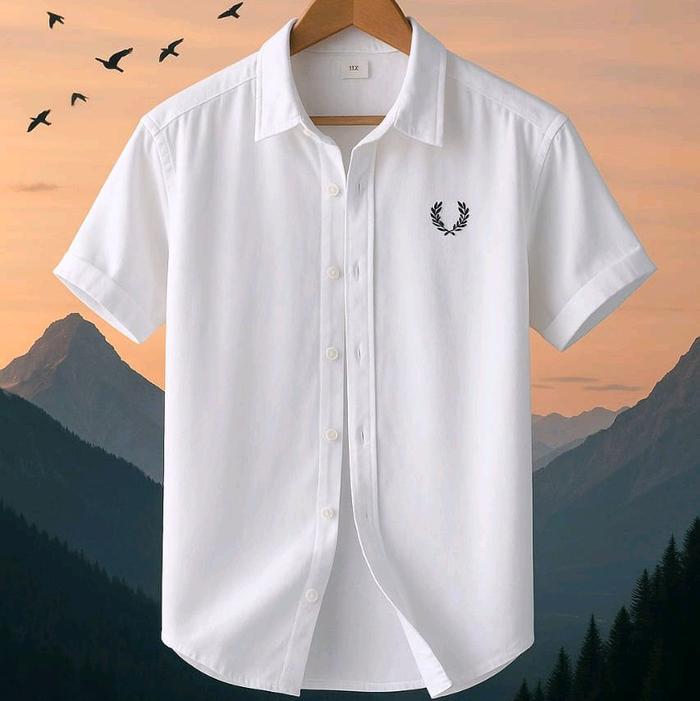 KEMEJA POLOS PRIA LENGAN PENDEK F.PE.R.R.Y...KEMEJA PRIA LENGAN PENDEK CASUAL, FORMAL MODEL SLIM FIT KATUN - PUTIH, M