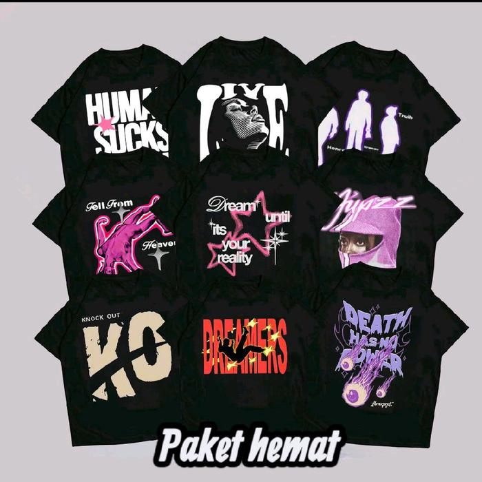 COMBO KAOS 3 PCS DISTRO HITAM JUMBO SKENA HEMAT | M | L | XL | 2XL | 3XL | - COMBO B1, M, 3PCS