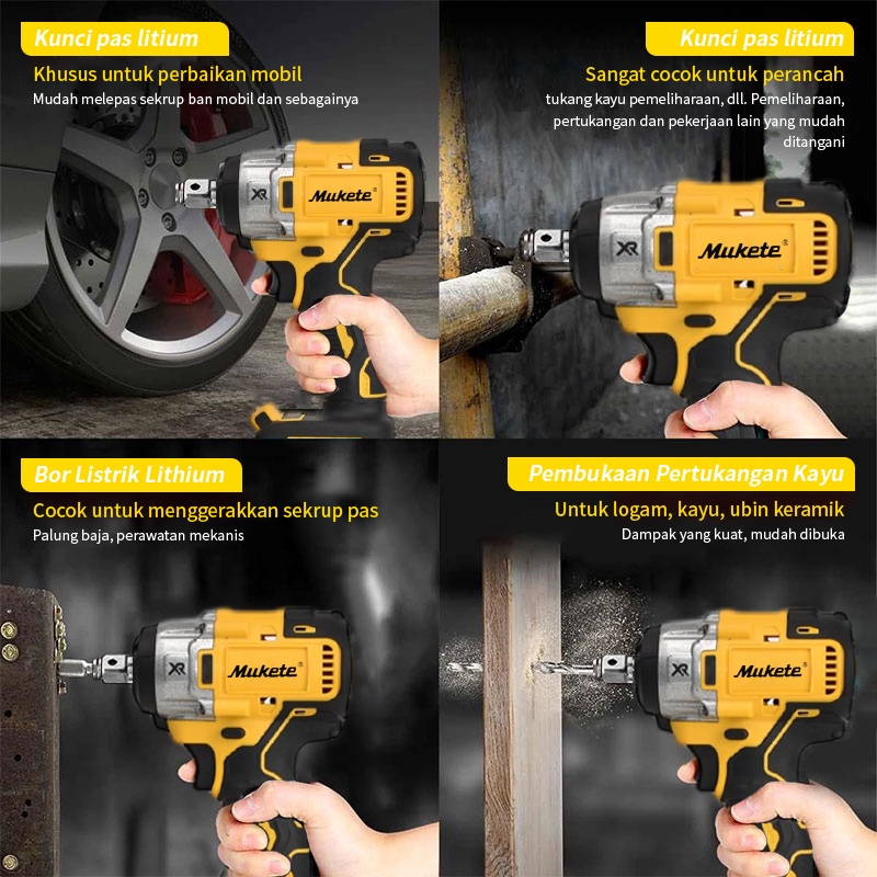 700N.M Impact Wrench 598V Wrench Cordless 1/2 Inci Cordless Impact Wrench 2 Baterai Kunci Impact