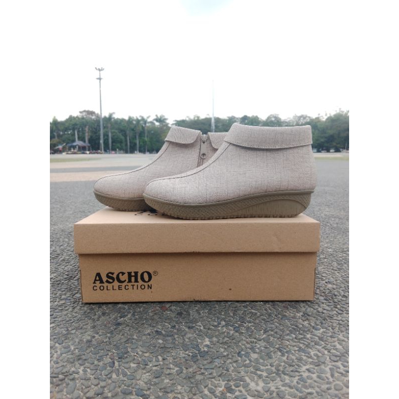 Ascho Sepatu Boots Wanita Alice Tan A03 Original Shoes - Korean Style