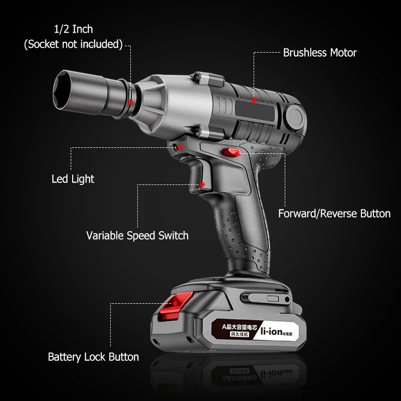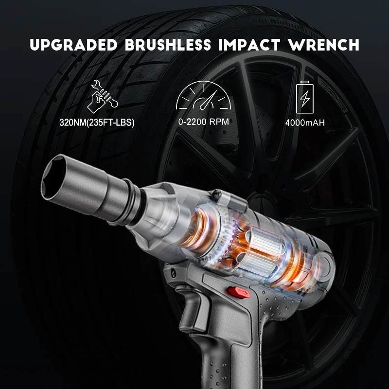 Impact Wrench Cordless 388V/588V 520Nm Brushless Bor Impact Baterai Mesin Impact Buka Baut Cordless Electric Wrench Rech