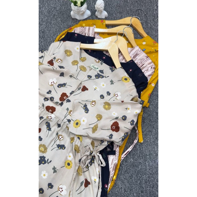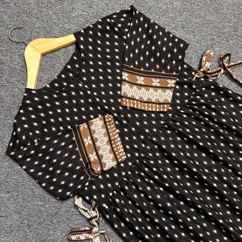 Levi Dress Ruffle Daster Tangan 3/4 Rayon Motif Rempel Dada Terbaru