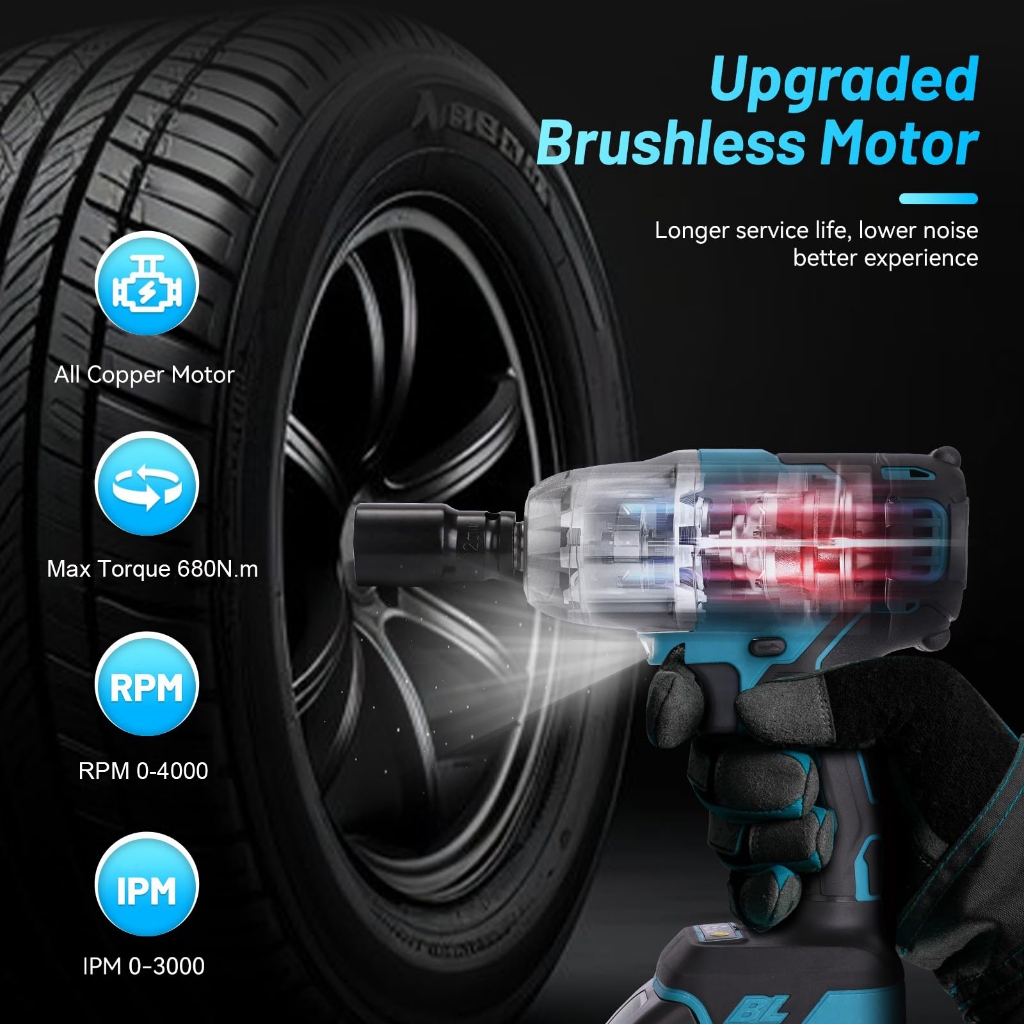 Impact Wrench 588V 680N/M Cordless Brushless Mobil Impact 2Baterai Impek Baterai Torsi Besar Untuk Baut Mobil Listrik Bo