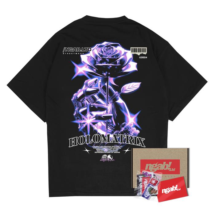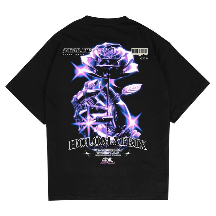 (GRATIS STIKER) NGAB KAOS BAJU DISTRO OVERSIZE HOLOMATRIX UNISEX OVZ027 HITAM PRIA WANITA COTTON COMBED 24S SABLON KEREN