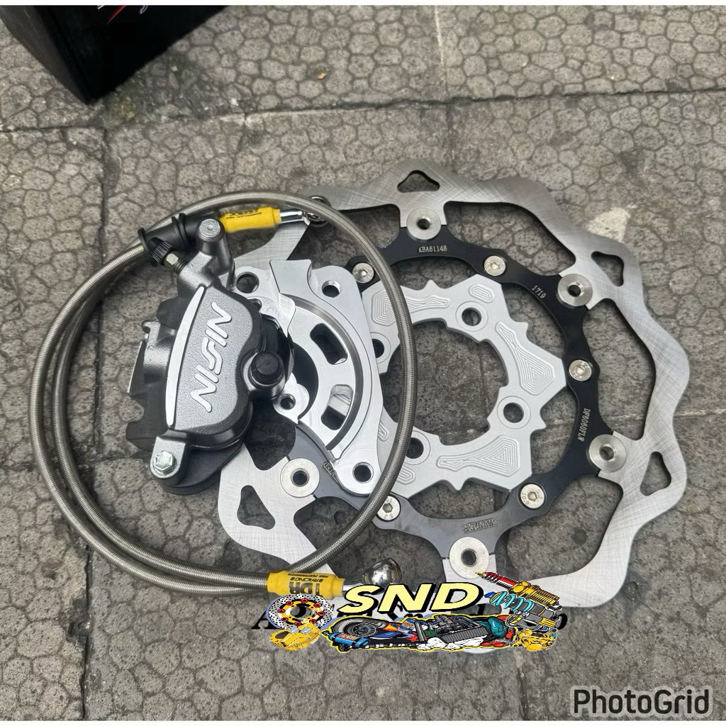 Paket Kaliper Nissin 2P Plus Breket Cnc Selang Rem Carbon Dan Disc Piringan 260Mm Mio Smile Soul Karbu