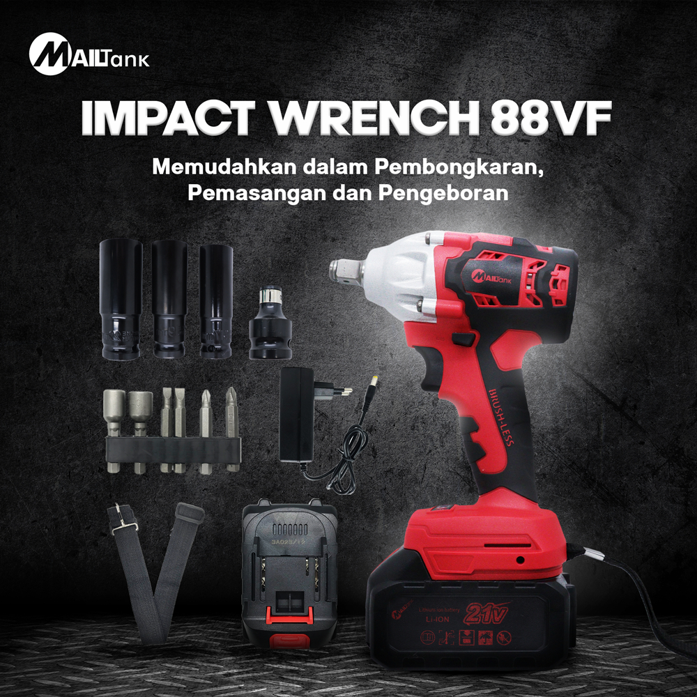 Mailtank Sh559 Cordless Impact Wrench 21V Brushless 300Nm Impact Baterai Bisa Bolak Balik Mesin Bor Untuk Baut Mobil Mot