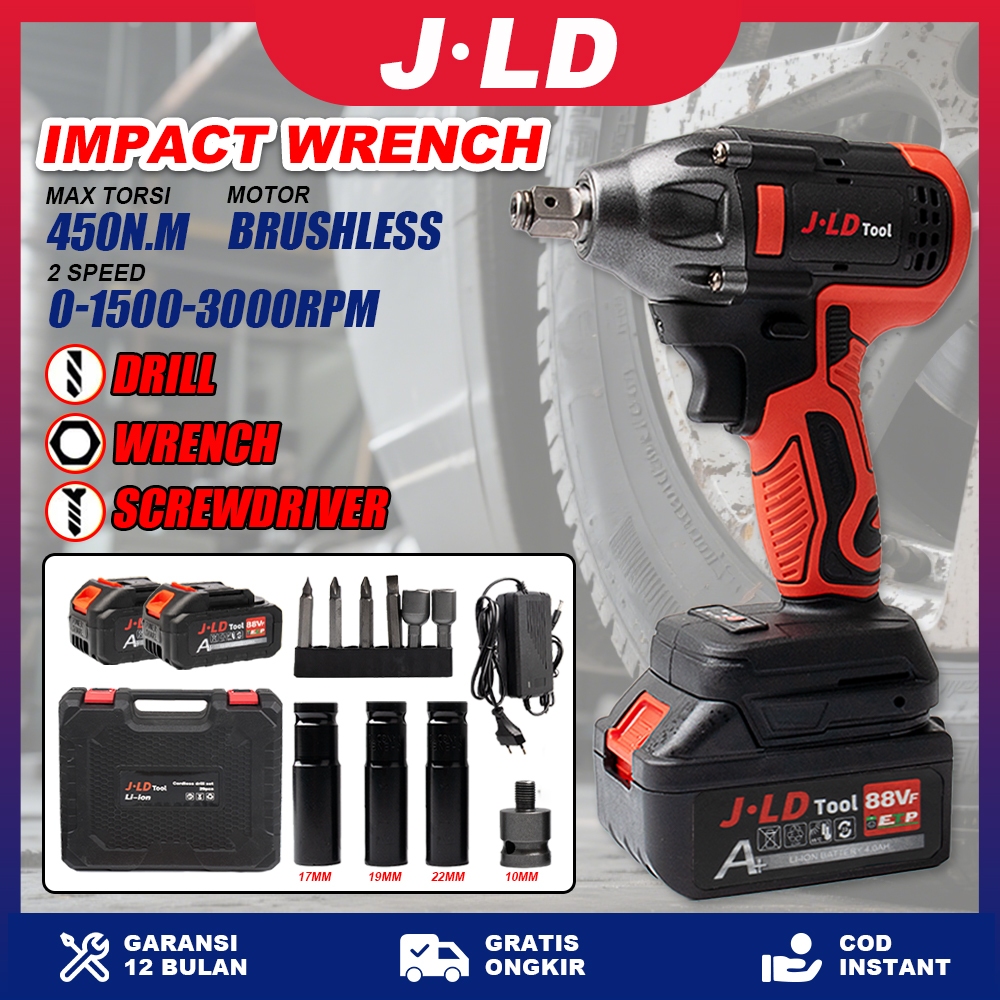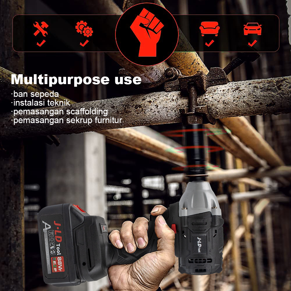 Jld Impact Wrench Brushless 350N.M Mesin Bor Baterai Bolak Balik Impact Bor Baterai Mesin Impact Pembuka Baut Electric