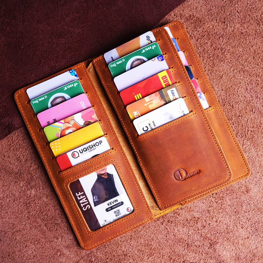 F012Qi Ch - Dompet Pria Panjang Lipat/Cowok Wanita Handphone 18 Slot Kartu Full Kulit Sapi Asli Kualitas Impor