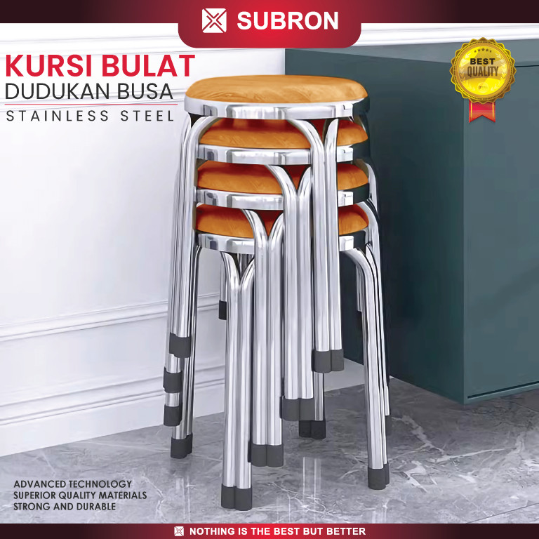 Subron Bangku 47Cm Kursi Baso Bulat Stainless Tinggi