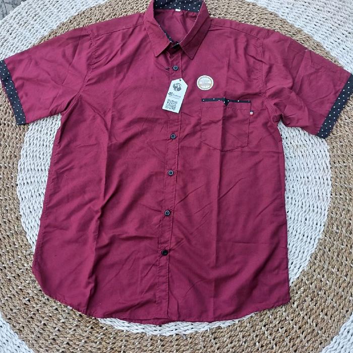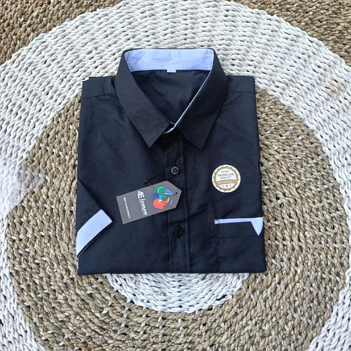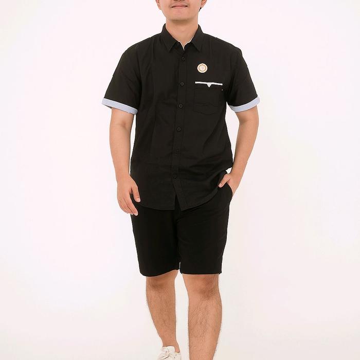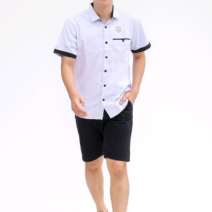 KEMEJA PRIA KATUN DISTRO CASUAL POLOS LENGAN PENDEK BAJU KERAH DEWASA COWOK PUTIH HITAM - PUTIH .PENDEK. DEWASA, M.