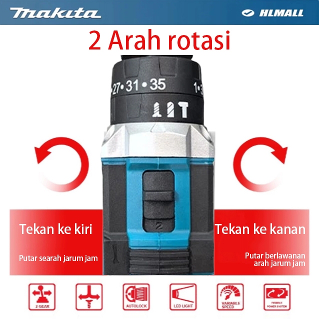 Maklta 9980Vf Mesin Bor 2Baterai Cas 10Mm Bor Listrik Murah Bor Tangan Baterai Besi Tembok Beton Kayu - Cordless Drill B