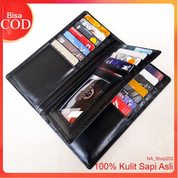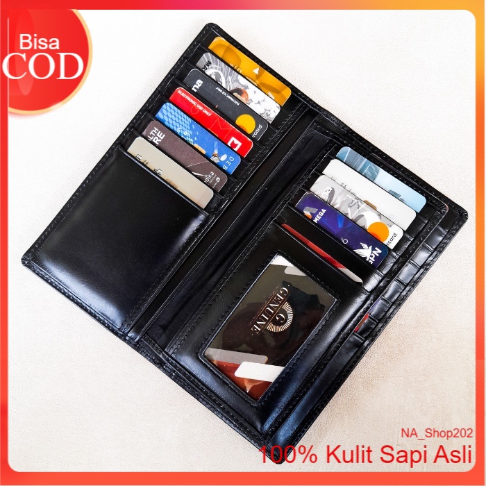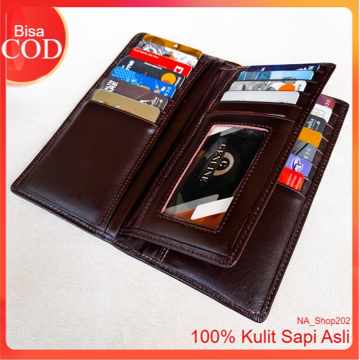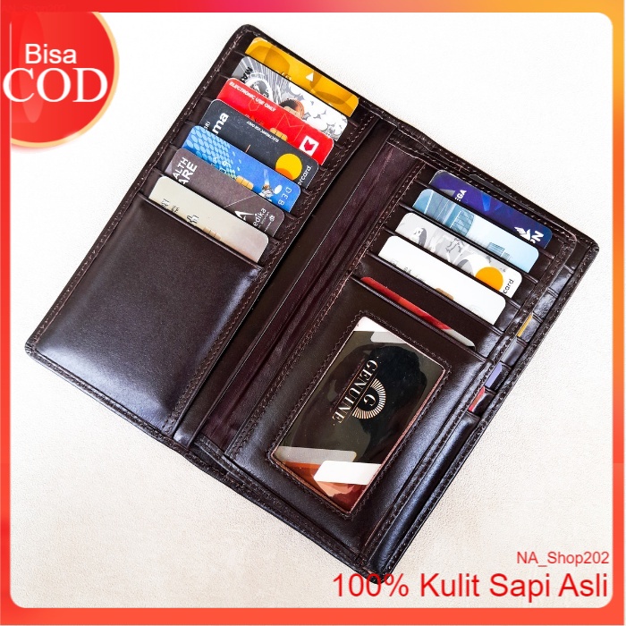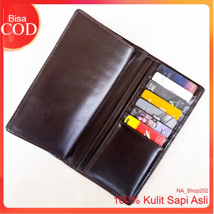Na_Shop202 Dompet Kulit Panjang Pria Wanita Bahan Kulit Sapi Pull Up Dengan Sisipan Tengan