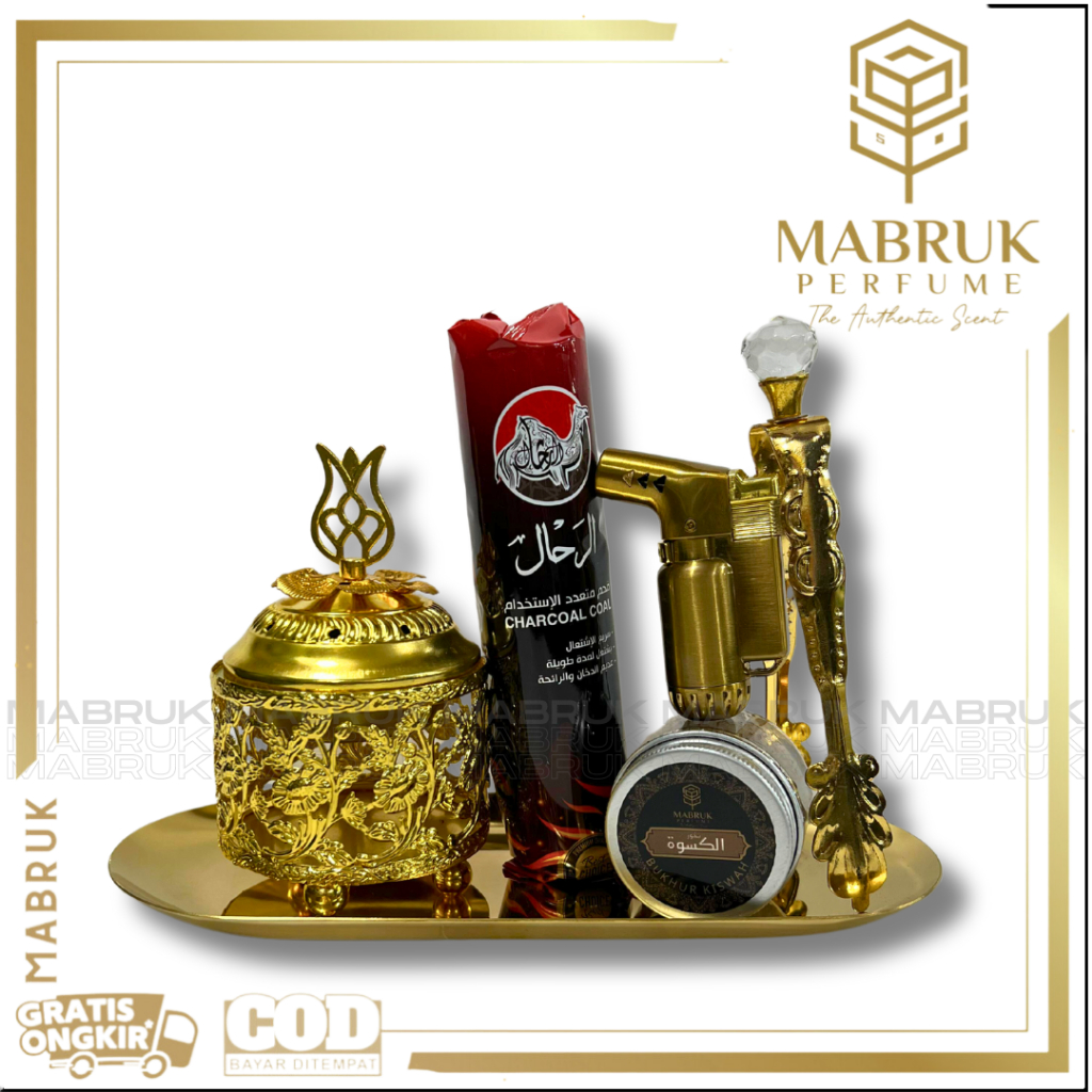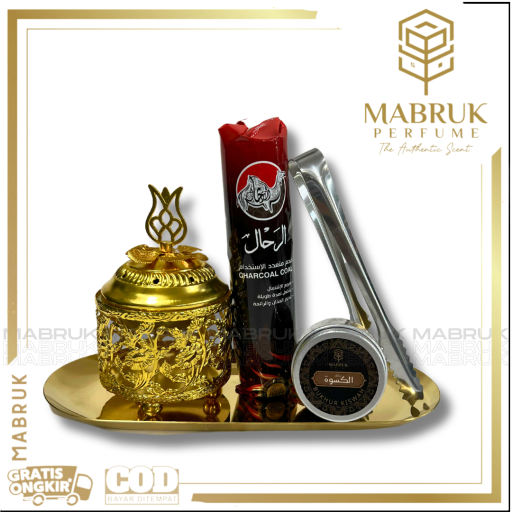 1 Set Tempat Bakaran Dupa Bukhur Mabkhara Nampan Capitan Arang - Paket Nabawi