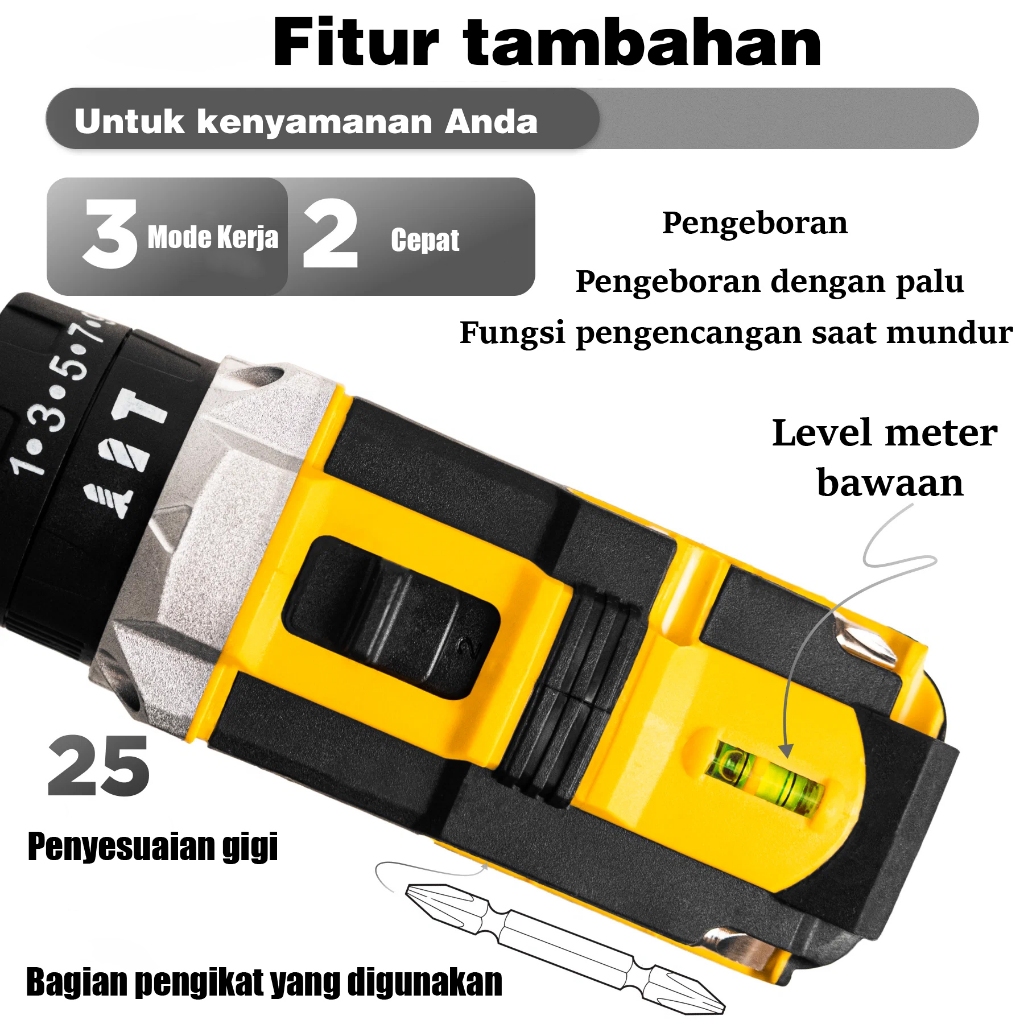 1800Rpm Bor Cordless 598V Mesin Bor Baterai Cas 10Mm Dapat Digunakan Pada Kayu Beton Logam Tembok