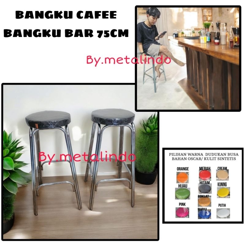 Bangku Caffe Tinggi Bangku Bar 75Cm Kursi Counter Kursi Warung Bangku Bulat Bangku Busa Empuk Bangku Baso Empuk