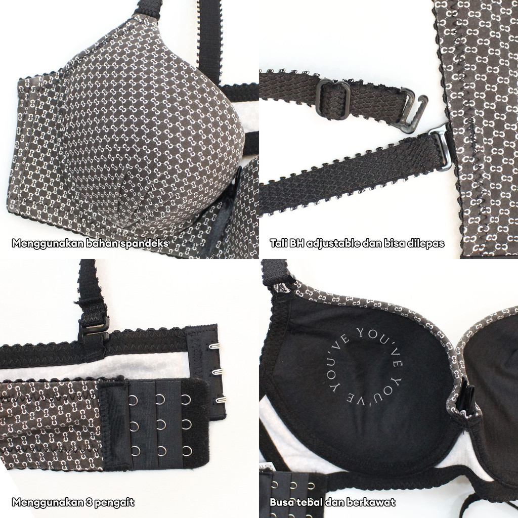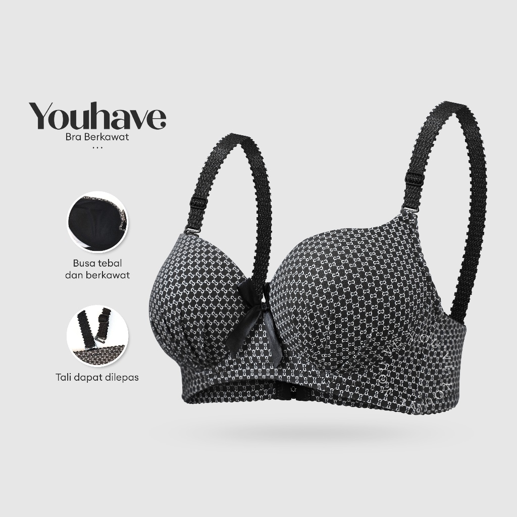 You’Ve ( Youhave ) Bh Bra Wanita Busa Tebal Kawat Push Up Kait 3 Cup Ab Motif Tali Bisa Dilepas Pasang Beha 100193