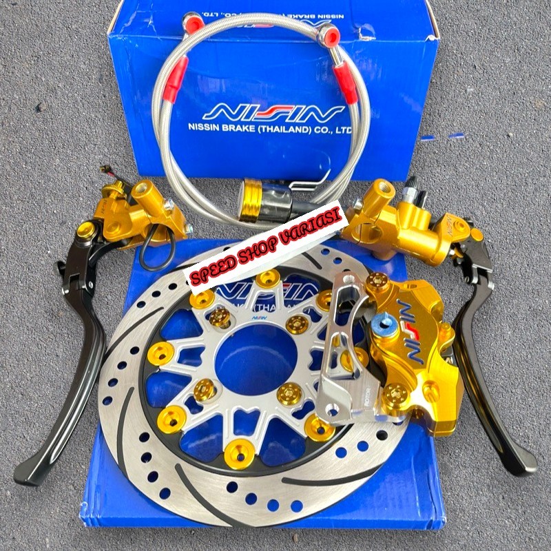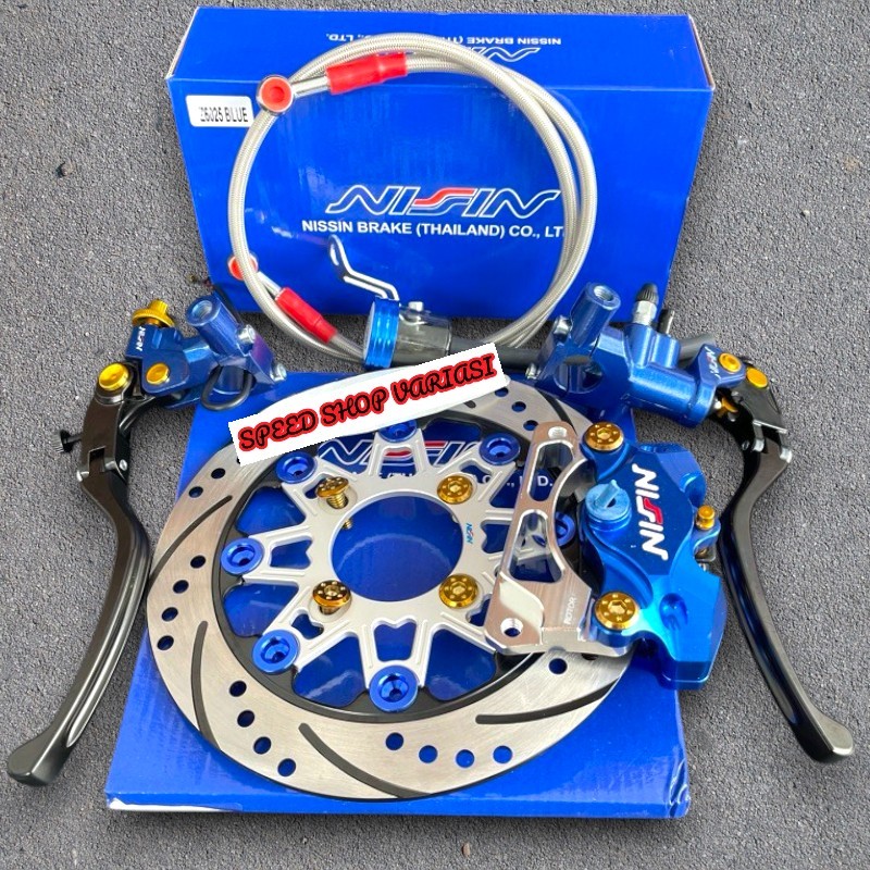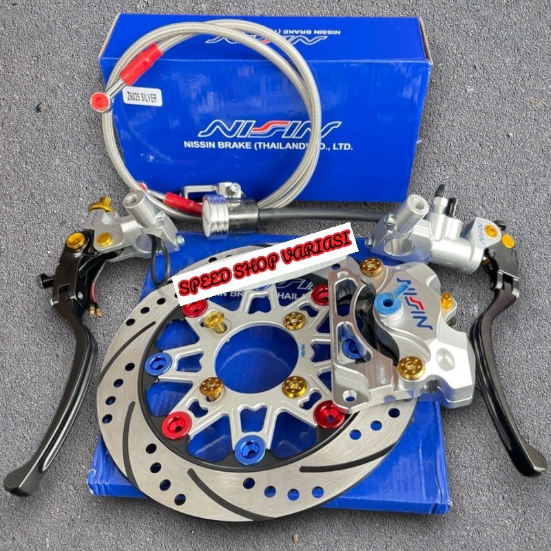 Paket Master Rem Nizzin + Piringan Disc 220Mm + Kaliper 2Piston + Selang Rem 90Cm + Baut Disc + Breket 220Mm Beat Vario